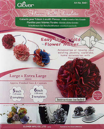 Flower Frill Templates Large & Extra Large. Aan de hand van 4 sjablonen (2x 5" (125mm) en 2x 6" (150mm) mooie bloemen maken van stof. Duidelijke gebruiksaanwijzing in de verpakking.