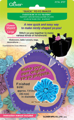 Quick Yo-Yo Maker Flower Large, 1 3/4" (45 mm) in diameter. Hartstikke leuk, bloemetjes om van alles mee te decoreren. Eenvoudig te maken. Plaats een stofje tussen de twee kunststof malletjes, rijgt een draad door de stof op de markeringspunten, trek de draad aan, knoopt hem vast en je hebt een leuk bloemetje.