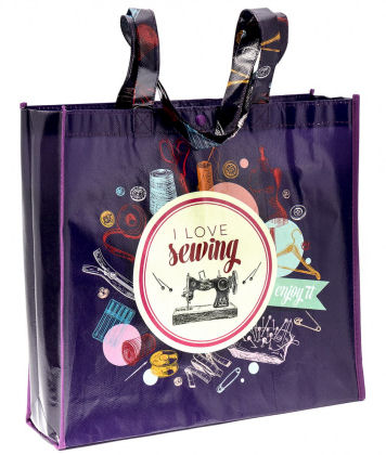 I love Sewing Shopping Tote. Multifunctionele boodschappentas in PP-glanzende afwerking. Op de kleur afgestemde schouderriem en drukknoopsluiting. Afmeting: 38 cm x 35 cm x 10 cm.