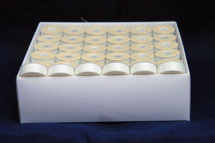 Voorgespoelde spoeltjes met kartonnen zijkant, kleur wit. Doos met 144 stuks.