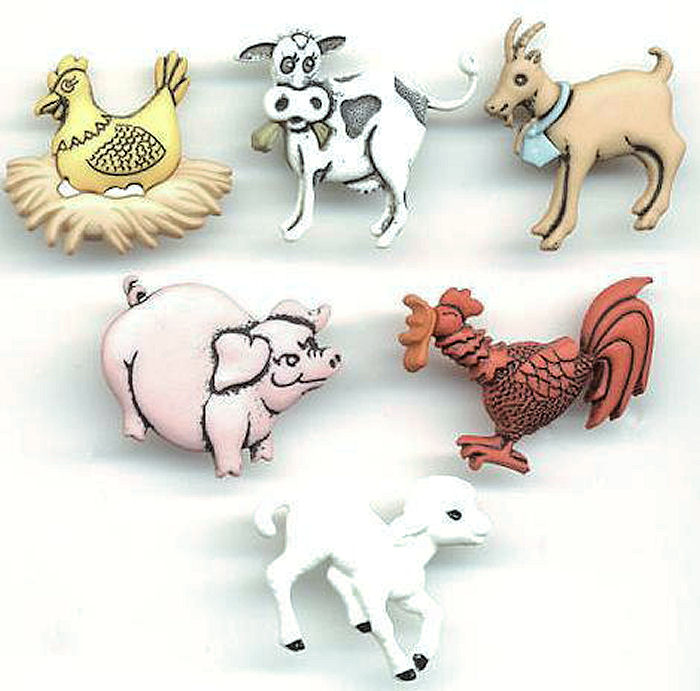 Dress It Up Buttons, motief boerderijdieren, 6 stuks