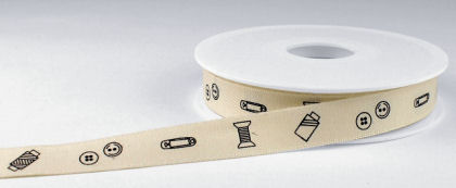 Lint Fournituren, per strekkende meter, ongeveer 14 mm breed, kleur white-off.