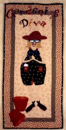 Gardening Diva. applicatiepatroon van Gotta Love It designs, Afmeting quilt 21 1/2"x 45" (21.75 cm x 114.30 cm).