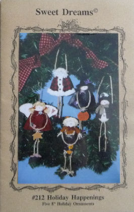 Holiday Happenings #212 van Sweet Dreams. Engelstalig patroon van vijf verschillende feestdagen ornamenten. Afmeting ornaments ongeveer 20 cm.