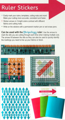 Easy Ruler Stickers van G.E.Designs. Drie vellen één van elke kleur. Turquoise, roze en limoengroen, 64 pijlstickers per vel. Gemakkelijk te verwijderen zonder resten. Kan worden hergebruikt voor het markeren van linialen, snijmatten en meer. Maak uw snijwerk nauwkeuriger, consistenter en sneller. Schrijf op de stickers met permanente markers of natte uitwisbare pennen.