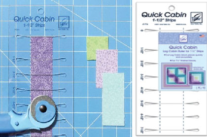 Quick Cabin 1.5 Ruler" van June Tailor. Maak snel log cabin blokken met 1,5 "-strips. Snijd 2 stroken in elke sleuf voor een blok. Maakt een afgewerkte 7" vierkant.