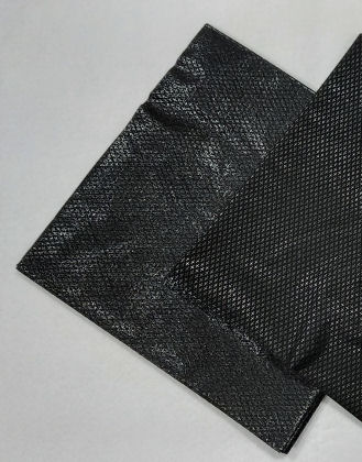 Mesh Opstrijkbaar Zwart, pakje 50 stuks 20 cm x 20 cm. een zeer stabiele knipvlies dat, vanwege zijn zachte en fijne structuur niet doorschijnt wanneer het wordt gebruikt onder zeer dunne stoffen. Het wordt gemaakt van 100% polyamide en heeft een smeltpunt is 260°C, waardoor het geschikt is voor persen of bij het strijken bij hoge temperaturen.