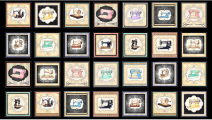 QT Tailor Made Small Sewing Machines Picture Patches, hoge kwaliteit stof 100% katoen Grootte vierkantje met naaimachine is plusminus 13 cm. Pakje met panel ongeveer 62 cm.